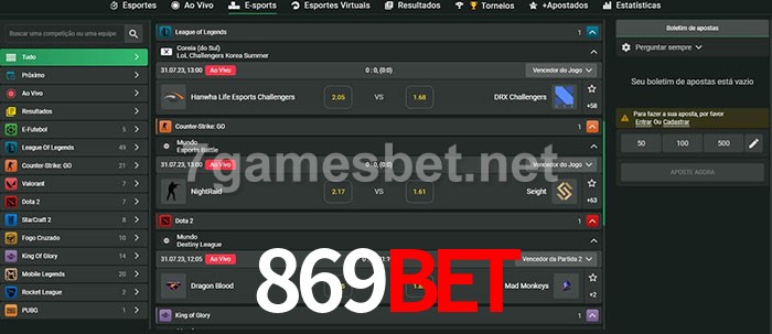 O 869Bet oferece uma grande seleção de opções de apostas em e-sports com probabilidades competitivas
